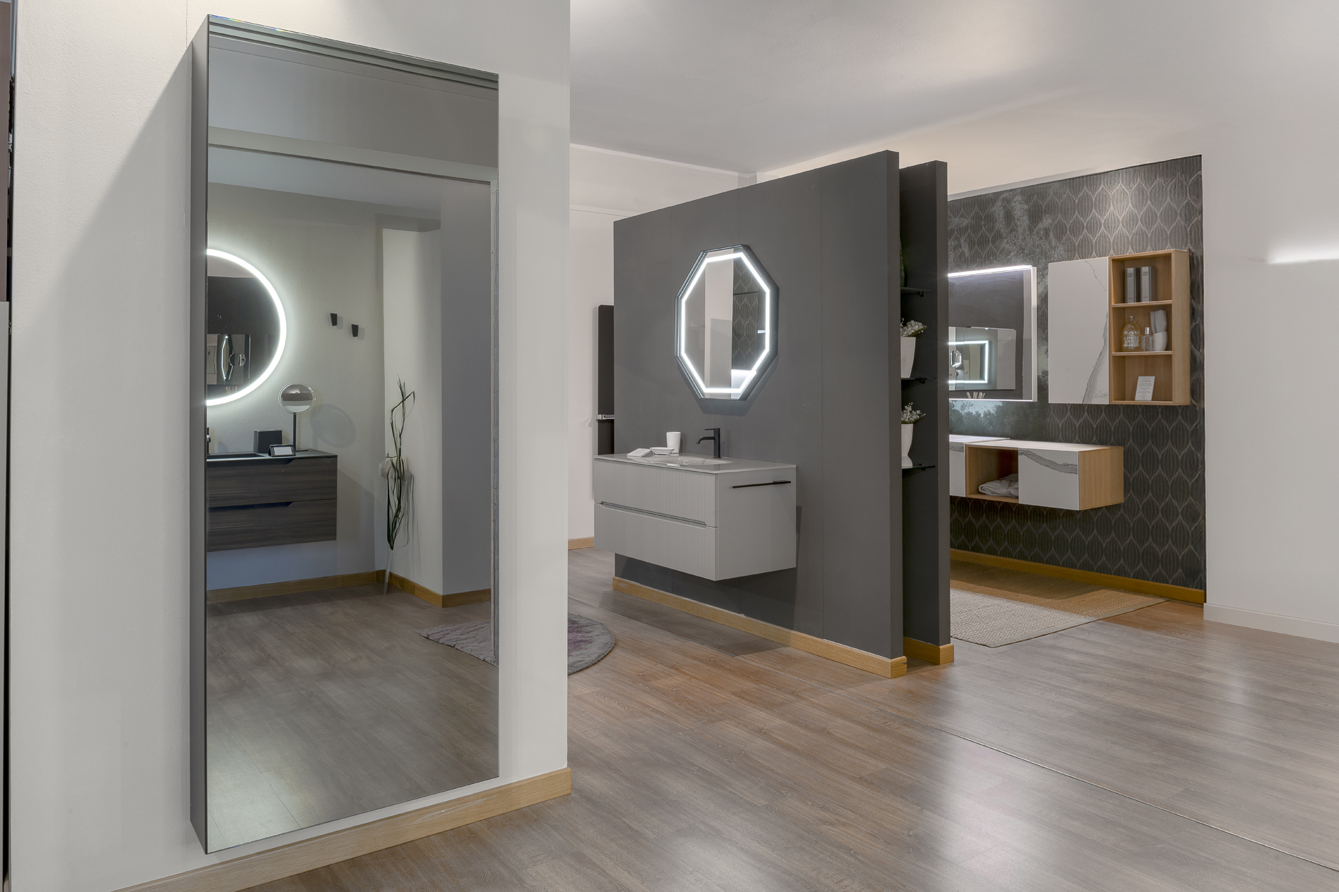 Negli ultimi anni la stanza da bagno è diventata uno spazio della casa sempre più prezioso, in cui è piacevole prepararsi la mattina per svolgere le attività quotidiane e ritirarsi, rincasando, per prendersi cura di sé e del proprio benessere. Con i consulenti d’arredo di Misura Casa, potrai creare la sala da bagno dei tuoi sogni, scegliendo ogni minimo particolare in base alle tue esigenze familiari, di stile e di spazio. I nostri mobili da bagno componibili sospesi e a terra sono disponibili in diverse composizioni e materiali (dalla fibra di legno al laccato), sono adattabili a qualsiasi metratura. Devi arredare la zona lavanderia? Da noi trovi a tua disposizione, pratiche soluzioni con lavatoi e porta-lavatrici. Per aumentare le tue possibilità di scelta, abbiamo in catalogo una linea di lavabi da appoggio in ceramica, a incasso, sospesi dal gusto raffinato, ideali per arredare case moderne e di design. I Box doccia che proponiamo, a parete, ad angolo, a nicchia, garantiscono una precisione estetica e funzionale senza precedenti e sono realizzabili su misura con tecnologie innovative. E infine, gli accessori che non possono assolutamente mancare in un bagno: appendiabiti, mensole modulari e componibili, dispenser, porta asciugamani, porta rotolo, porta spazzolino, porta scopino, pensili a giorno e specchiere contenitore con anta a ribalta. O, ancora, innovativi specchi contenitori a incasso con casse e Bluetooth, accessoriabili con portaoggetti e portasciugamani in metallo laccato. Tutto quello che serve, insomma, a rendere il bagno la tua stanza di casa preferita.